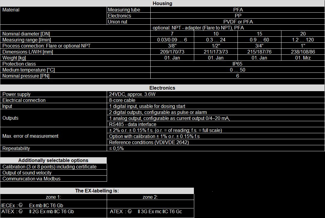 Flowmax® is suitable from DI water to alkaline, toxic and aggressive media as well as solvents, including in explosion-hazardous areas. The device stands out for high measurement accuracy, reproducibility, and integrated empty-volume monitoring. The measured volumetric flow rate is available at the outlets with milliseconds response time. By default Flowmax® has a preset quantity counter; an external start signal is optional. A control signal for activating pumps or valve control is also available.