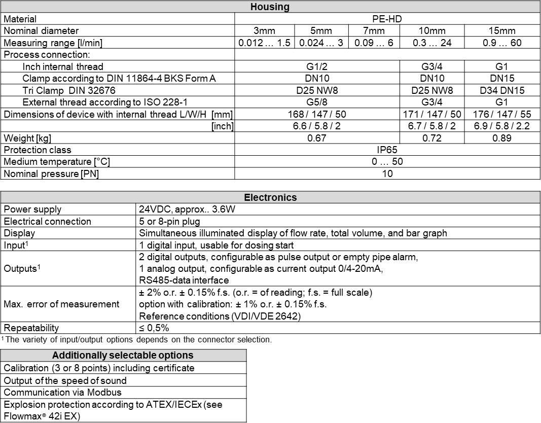 By default, Flowmax® includes a preset quantity counter; an external start signal is optional. A control output for pumps or valves is integrated. Thus, Flowmax® 42i     is ideally suited for use with piston-diaphragm and peristaltic pumps.